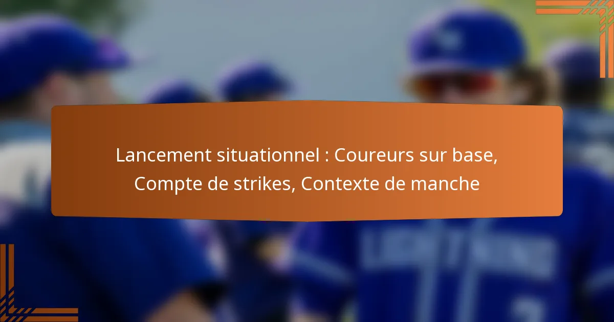Le lancer situationnel est une approche tactique où les lanceurs ajustent leurs stratégies en fonction de scénarios de jeu spécifiques. Cela inclut la prise en compte du nombre d’éliminations, de la position des coureurs et du score actuel. Comprendre ces facteurs permet aux lanceurs de prendre des décisions éclairées qui peuvent empêcher des points et garantir des victoires.